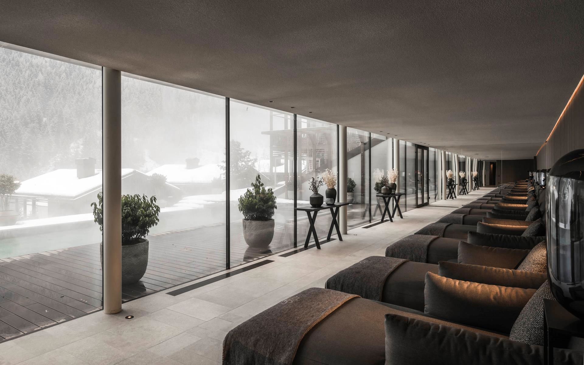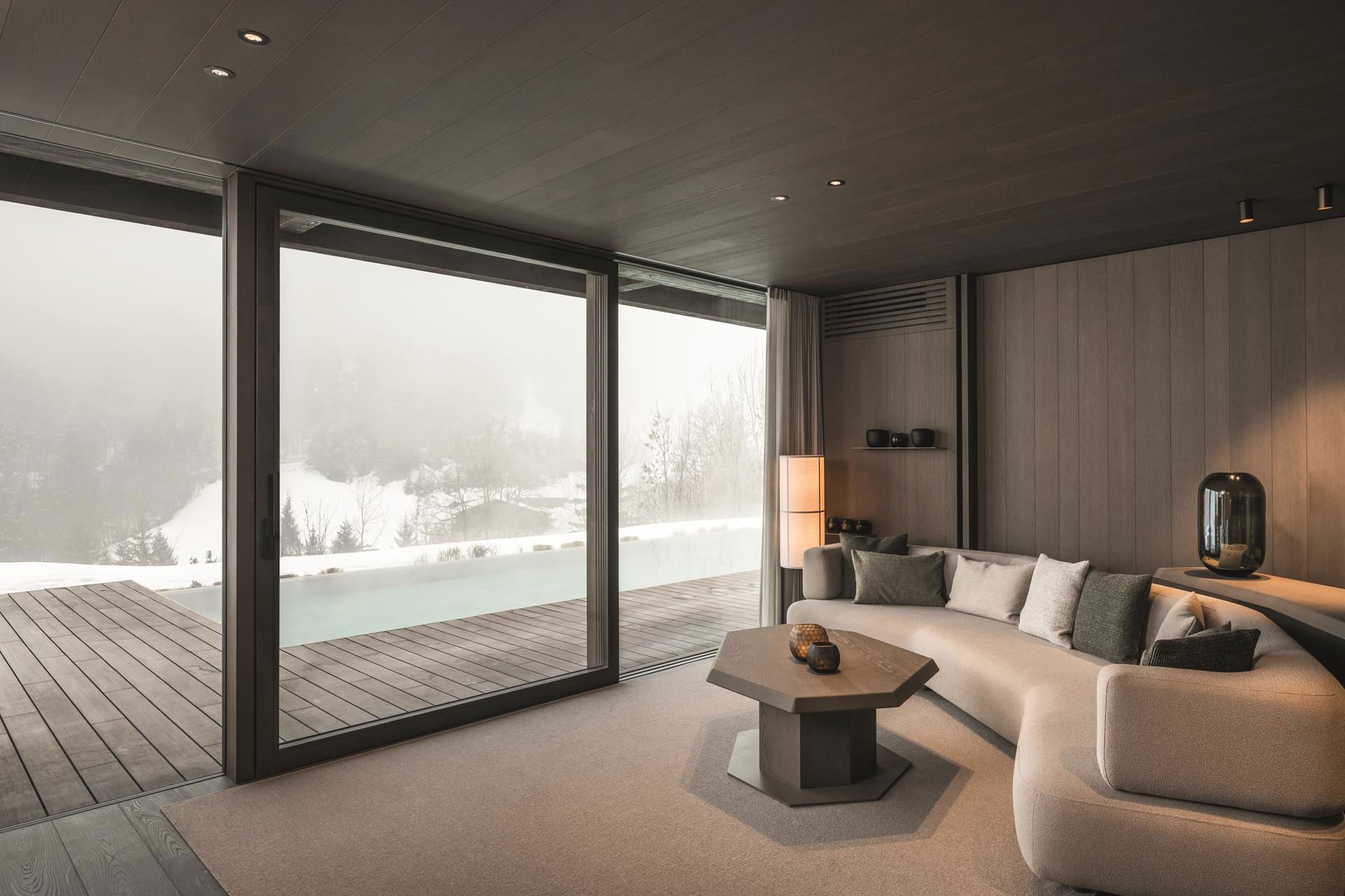 Negli Amonti Chalets l’eleganza senza tempo si incontra con la libertà senza confini. Le nostre finestre e porte – dalla Topline 80 Design alla Climatop 92 Design, fino alle vetrate senza telaio e alle porte scorrevoli DELUXE – lasciano entrare luce e panorama montano senza ostacoli. Così nascono spazi pieni di quiete, comfort e gioia di vivere, dal chalet stesso fino alla spa, alla lounge e al ristorante gourmet. Ogni dettaglio unisce massima qualità, leggerezza stilistica e perfetta armonia con l’unicità delle Dolomiti altoatesine.